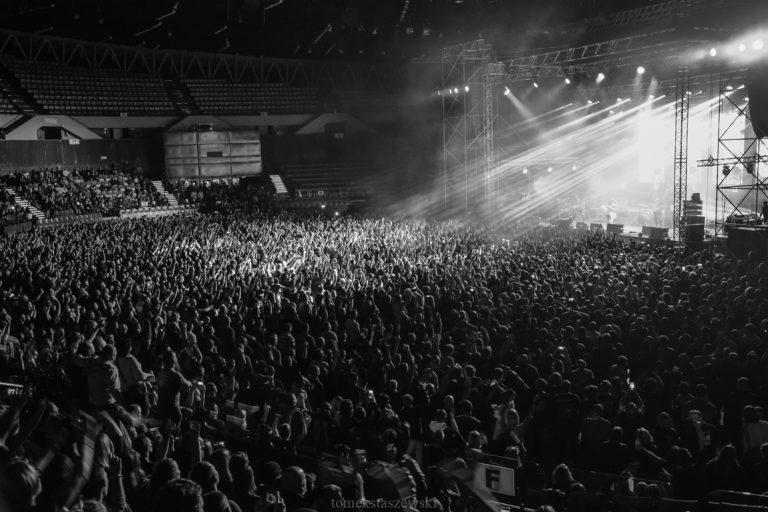 Na godzinę przed koncertem przez Spodkiem widać było długie, kręte kolejki do bramek wejściowych, co zapowiadało dobrą frekwencję. I rzeczywiście, jak co roku Spodek zapełnił się fanami Kultu z całego Śląska. Bawiły się trzy pokolenia, co niezmiennie mnie na koncertach Kultu zachwyca. Widać, że miłość do dobrej muzyki przechodzi z pokolenia na pokolenie. Patrzenie na dzieci tańczące i śpiewające piosenki Kazika Staszewskiego sprawia, że serce rośnie.