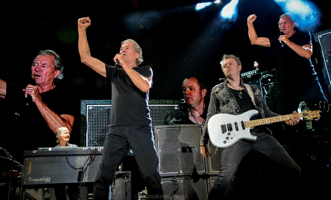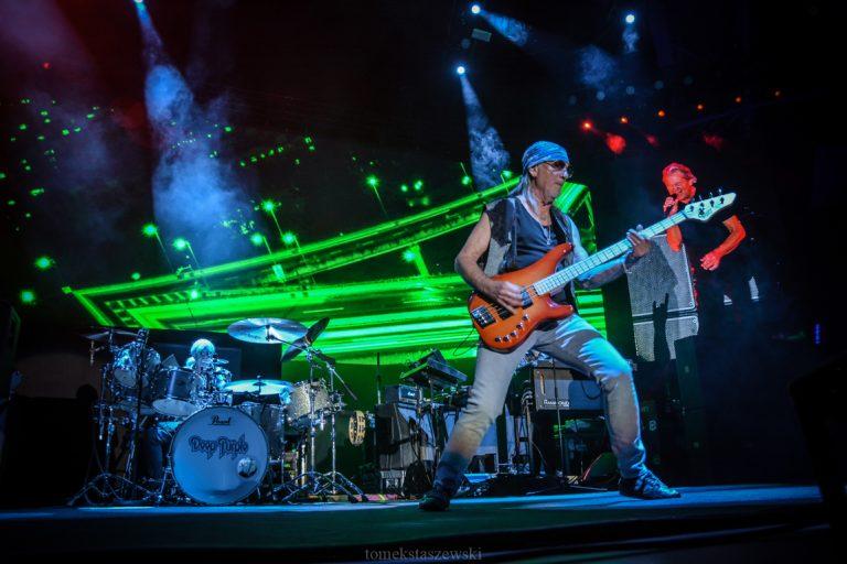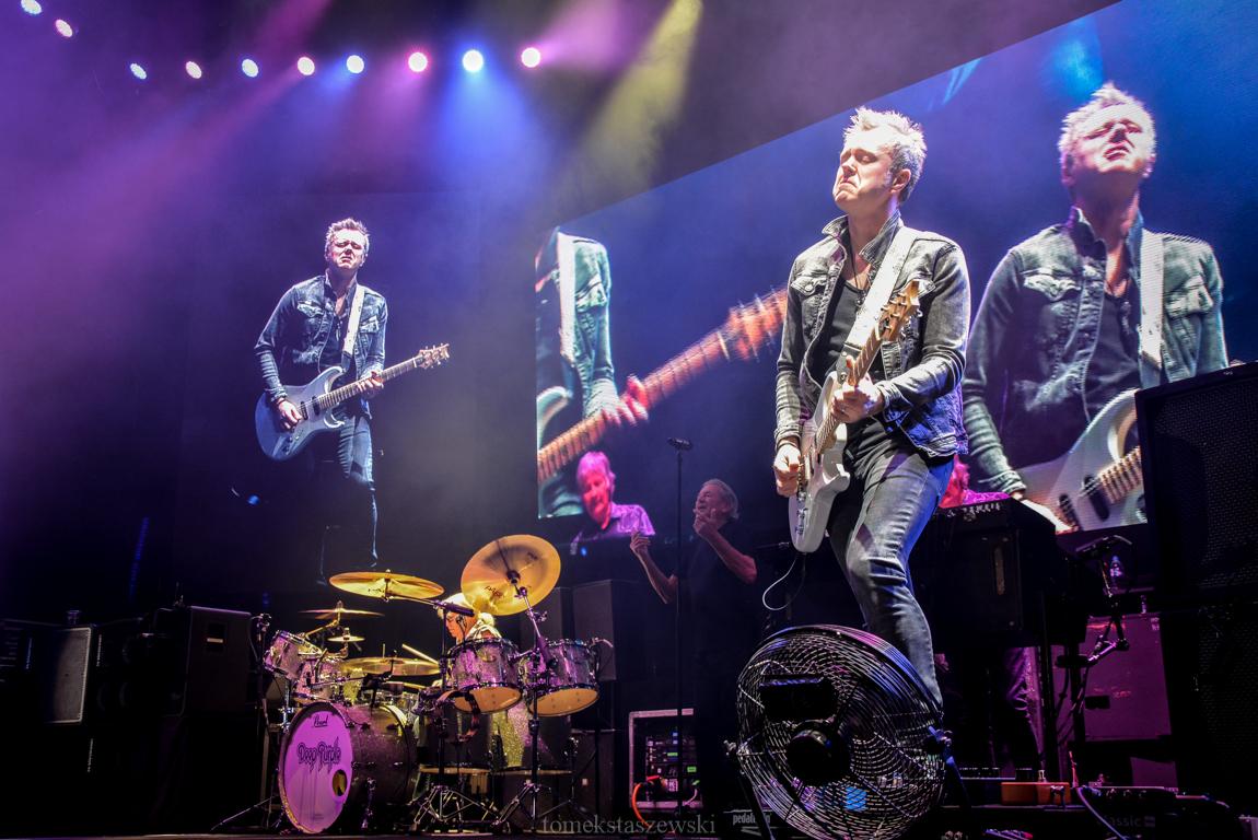 Wreszcie przyszła kolej na tych największych. Pojawili się w nowym składzie. Oprócz Ianna Gillana, wokalisty, grającego na harmonijce ustnej i instrumentach perkusyjnych, basisty Rogera Glovera, Iana Paice`a, perkusisty związanego z Deep Purple od 1968 roku, Dona Airey`a, klawiszowca, pojawił się dużo młodszy Simon McBride. Zastąpił Steve`a Morsa i zrobił to godnie. Jego solówki były fenomenalne a to, co wyczyniał z klawiszami Don Airey, przeszło moje oczekiwania. On również jak należy zastępuje niezapomnianego Johna Lorda.